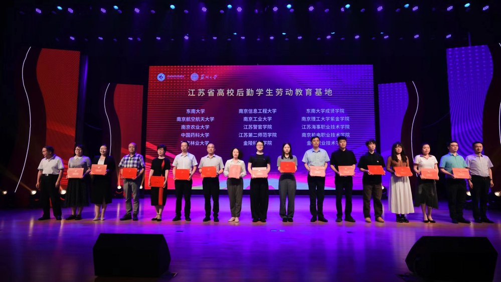 6月2日,江苏省高校“学生劳动教育示范基地”“学生劳动教育基地”授牌仪式在苏州大学举行,学校获评江苏省高校后勤学生劳动教育基地称号,后勤处处长孙永玲参加授牌仪式。
