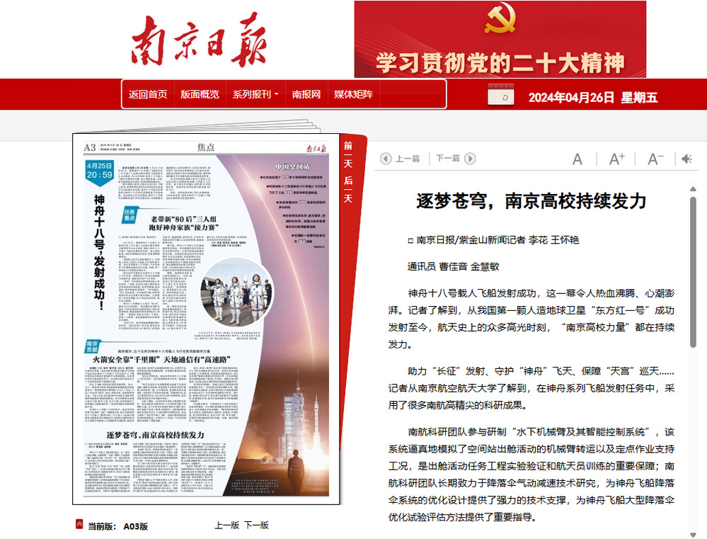 报道链接:南京日报数字报-逐梦苍穹,南京高校持续发力 (njdaily.cn)