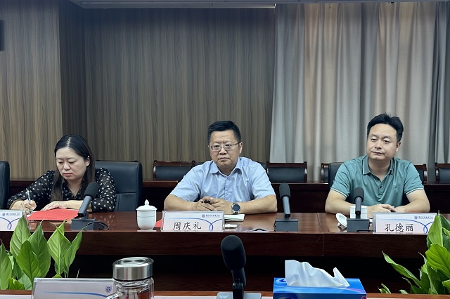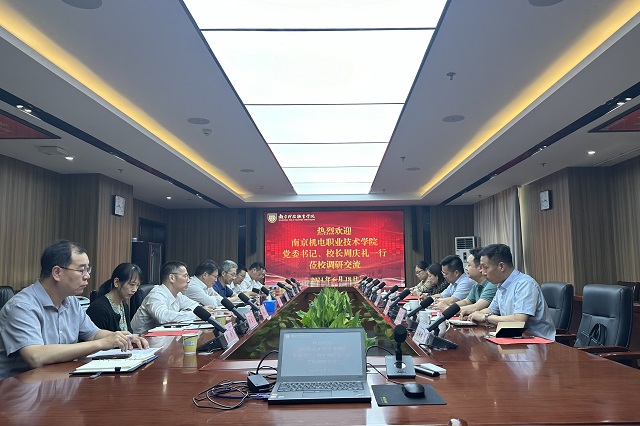 为快速推进学校国际化人才培养战略,探索学校国际交流与合作项目建设路径,6月18日下午,我校党委书记、校长周庆礼,党委委员、副校长孔德丽,党委委员、纪委书记、工会主席姜振宇一行6人赴南京科技职业学院开展交流调研。南京科技职业学院党委书记何学军,党委委员、纪委书记马宇,党委委员、副校长赵旭升等领导出席本次调研活动。