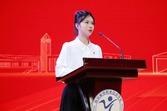 学生代表刘哲凯同学代表全校学生,满含深情向老师们送上了节日祝福,感谢师恩。优秀教师代表卢彬同志作表态发言,她阐述了自己对于习近平总书记“四有好老师”标准的认识,同时分享了自己对积极应对教育数字化转型、聚焦职教“五金”建设的思考。