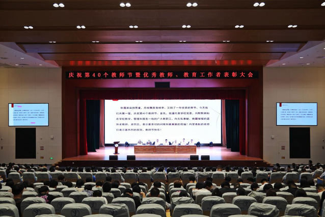 9月10日下午,学校在星梦馆青春剧场举行第40个教师节庆祝活动暨优秀教师、教育工作者表彰大会。全体教职工参加会议,大会由学校党委委员、副校长孔德丽主持。
