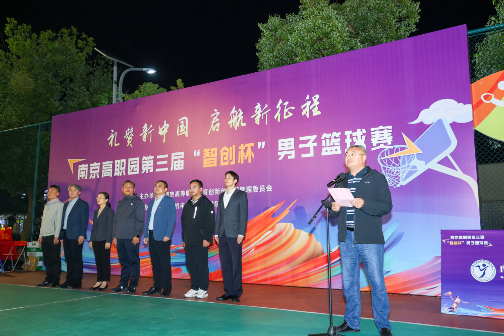 为庆祝新中国成立75周年,深入学习贯彻党的二十届三中全会精神,推动文化事业发展,强化校企地融合,加强园区“智创”党建联盟成员单位交流。10月23日,由南京高等职业教育创新创业园管理委员会主办、开云手机官方版页面登录入口承办的2024年南京高职园第三届“智创杯”男子篮球赛在我校顺利开幕。开幕式由党委委员、党委工作部副部长高水冕主持。