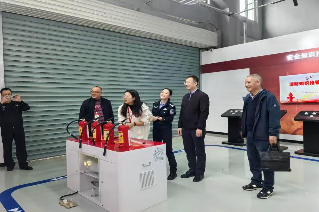 武小青一行还参观了学校即将投入使用的大学生安全应急教育体验中心,实地体验使用了消防安全模块和防范诈骗模块相关设备,赞赏了学校创新采用视、听、互动体验相结合的三维安全教育形式。