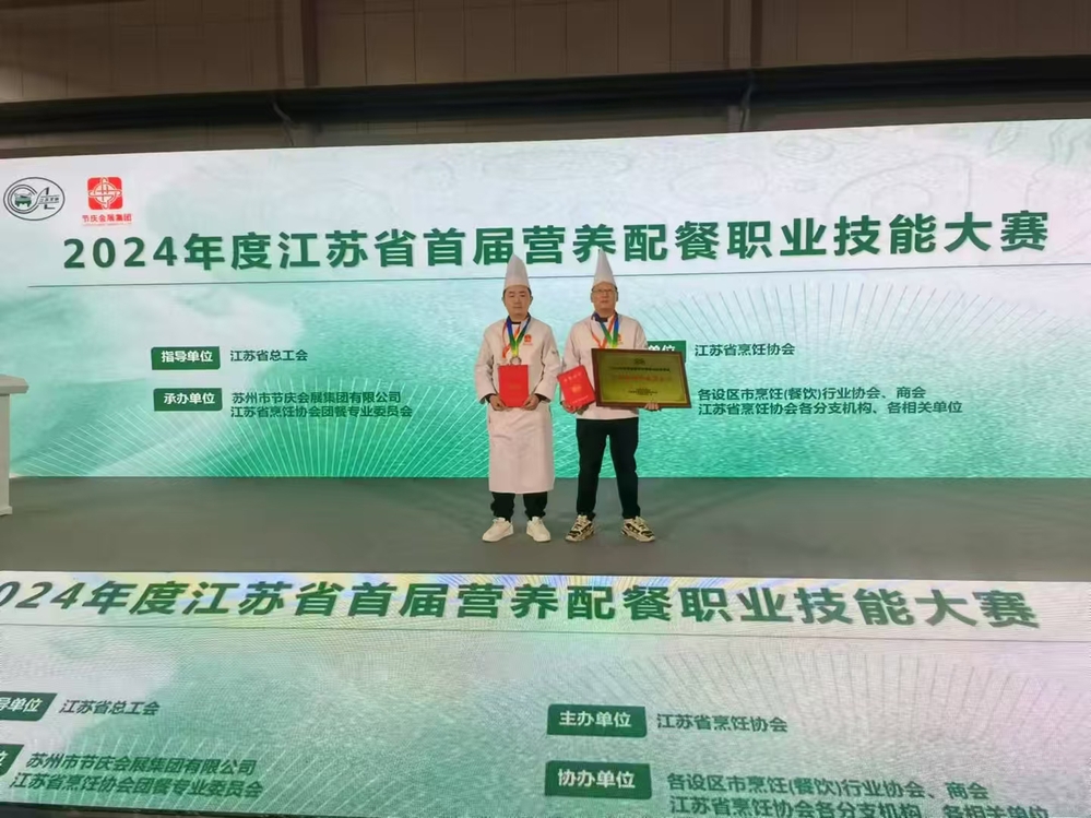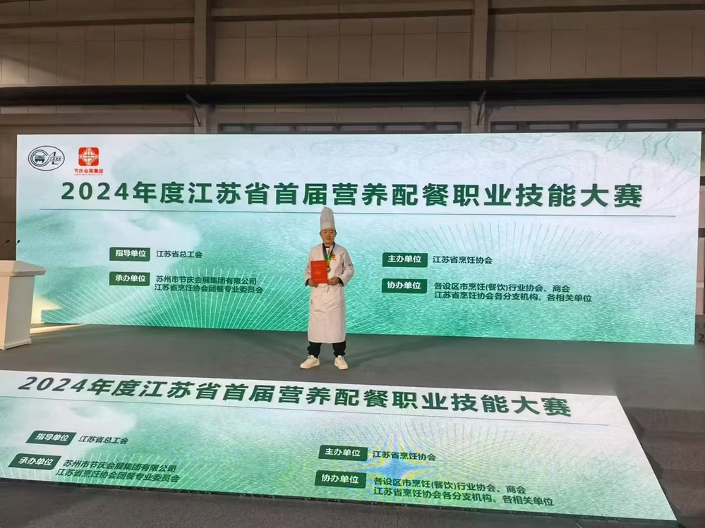 2024年12月28日,由江苏省烹饪协会主办的2024年度江苏省首届营养配餐职业技能大赛圆满落幕,我校一楼学生食堂厨师张发旭凭借精湛厨艺与科学营养搭配脱颖而出,斩获学生营养餐银奖、营养套餐银奖两项大奖。