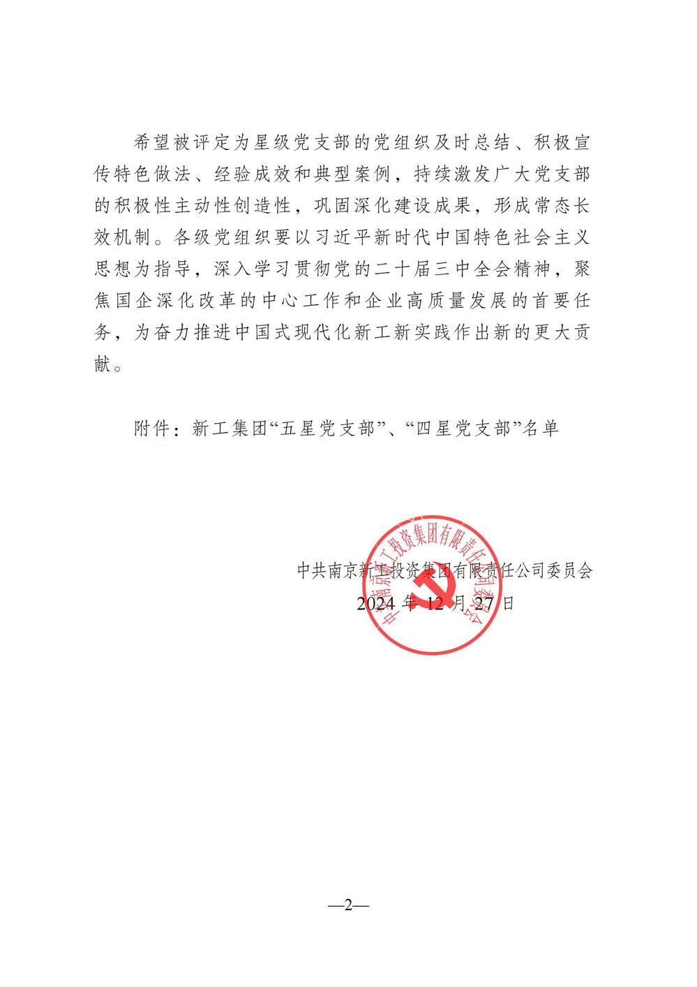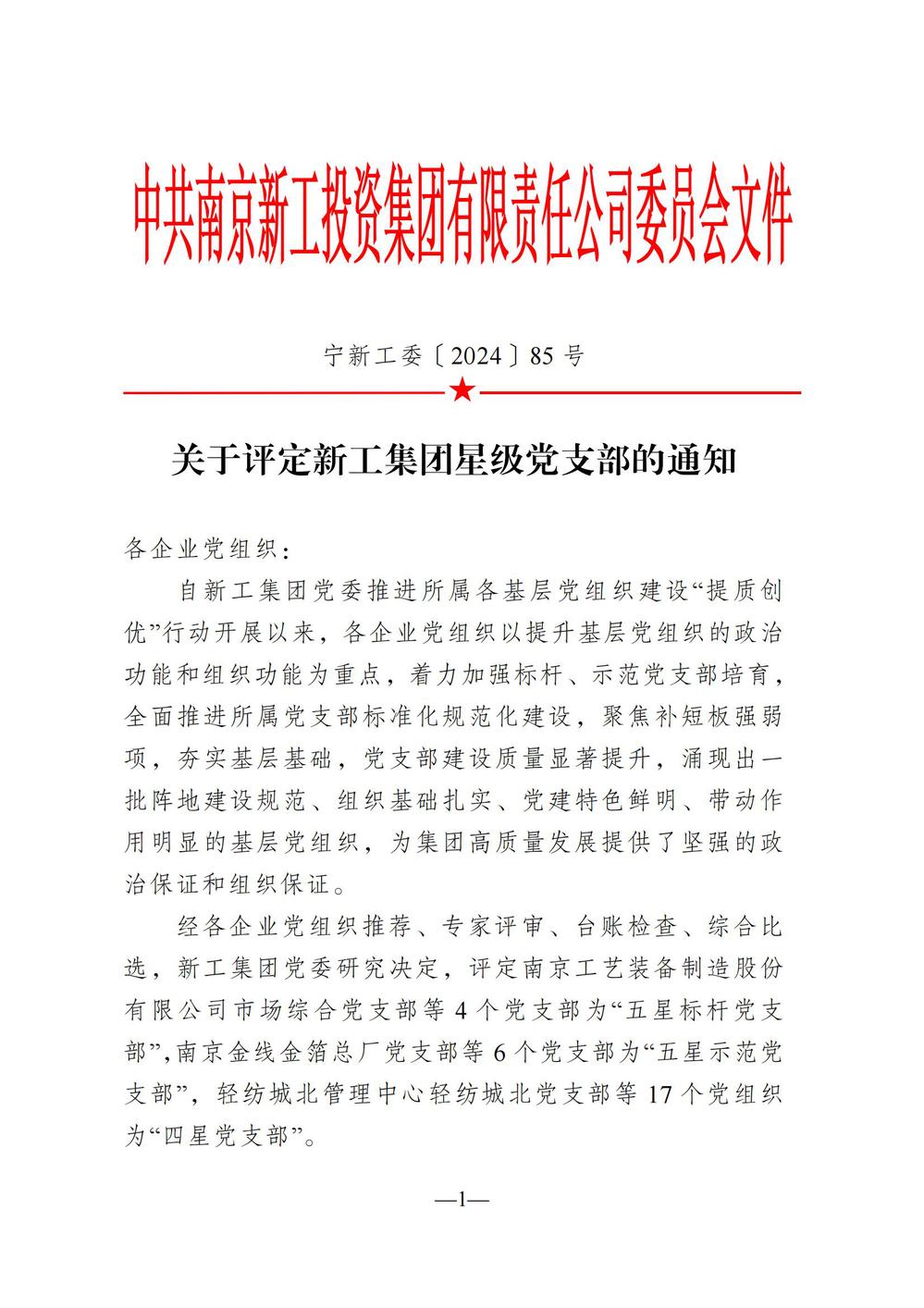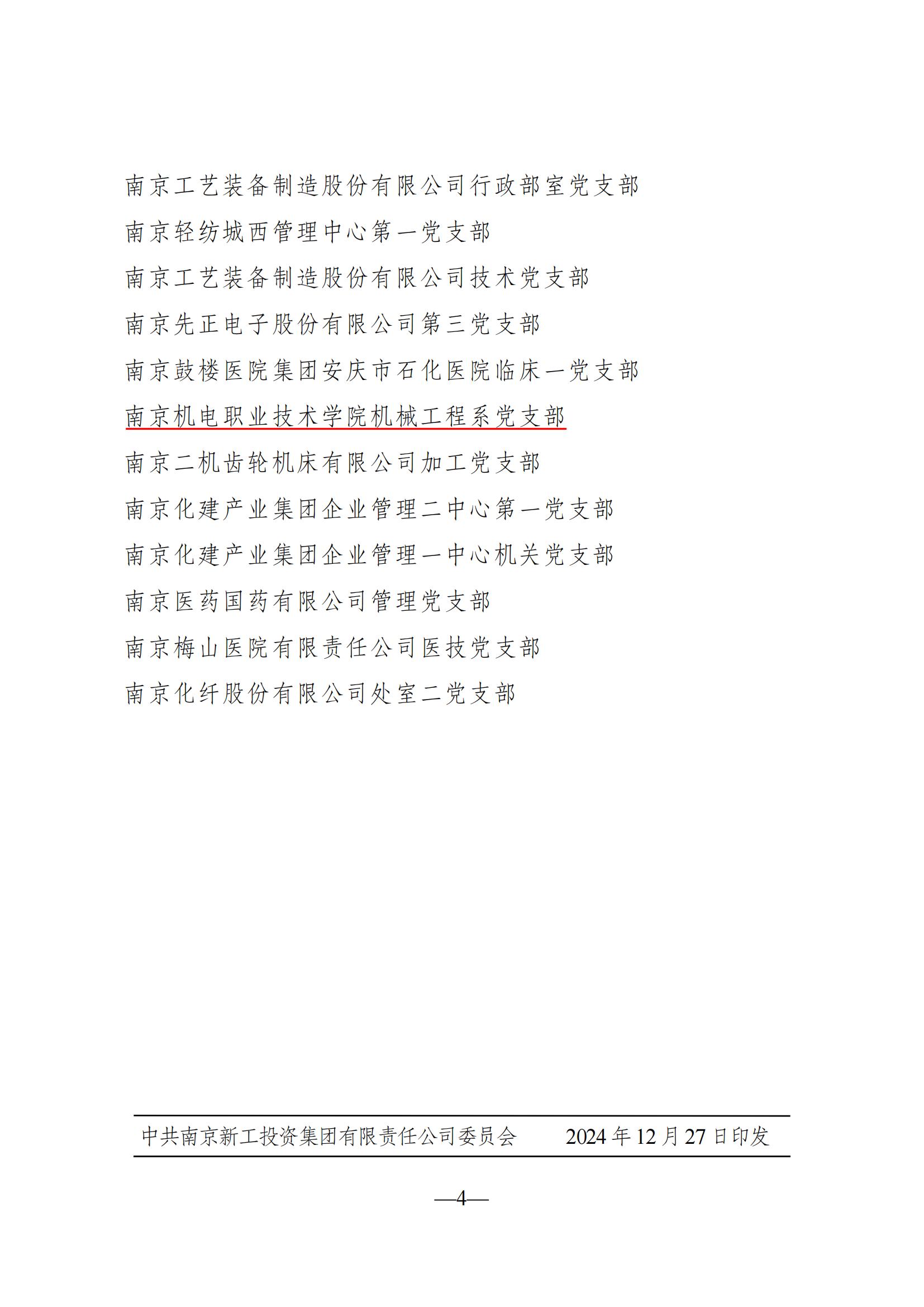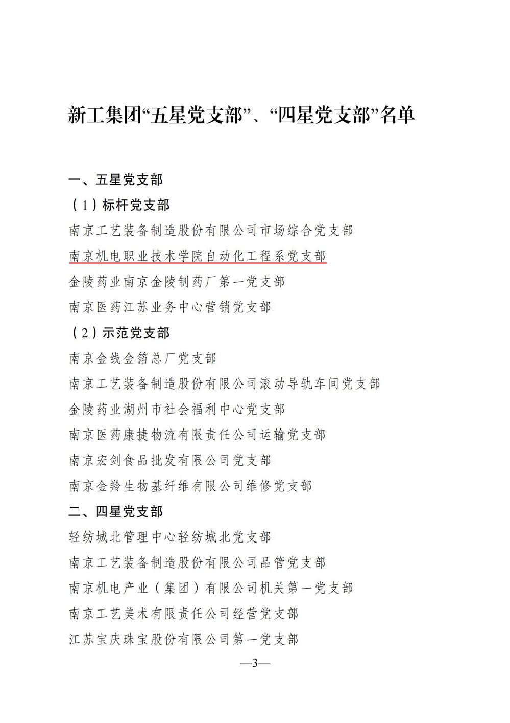 近日,中共南京新工投资集团有限责任公司委员会下发《关于评定新工集团星级党支部的通知》(宁新工委〔2024〕85号),自动化工程系党支部获评“五星标杆党支部”,机械工程系党支部获评“四星党支部”。