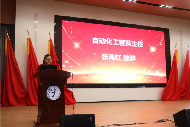 张海红致欢迎辞,她表示,校企合作设立奖学金对专业人才培养十分重要。张海红回顾了双方合作历程中的重要节点与显著成果,指出校企双方秉持优势互补、合作共赢的原则,携手成立南京机电·上海三菱电梯产业学院,并对未来合作前景充满期待。