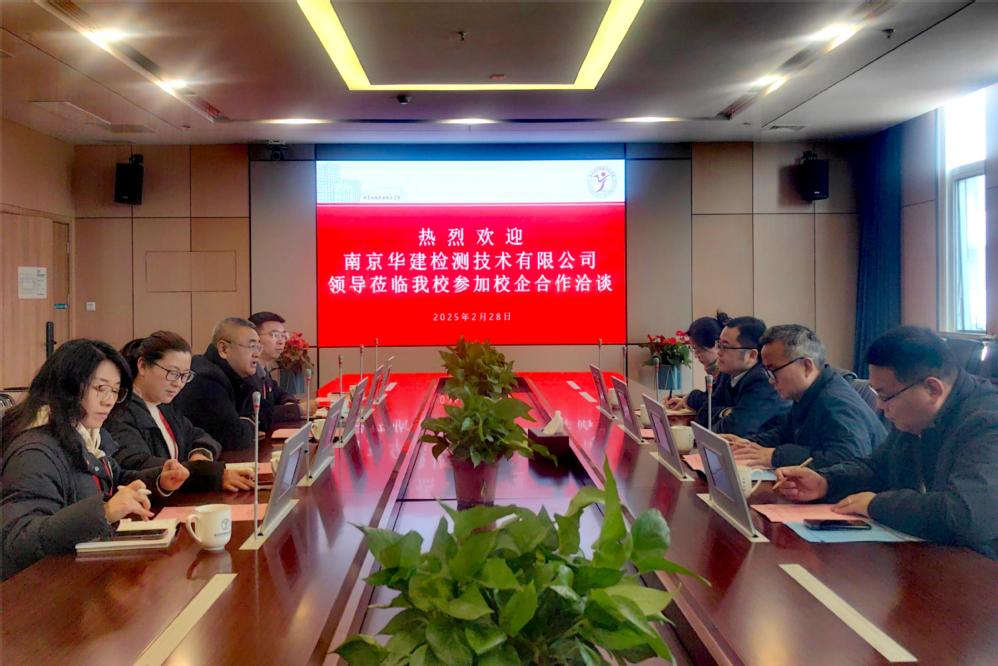 2月28日上午,南京华建检测技术有限公司总工程师黄德海一行4人来访我校,就进一步推进校企合作、深化产教融合进行洽谈交流。学校党委委员、副校长刁爱军,自动化工程系副主任张海红、党支部副书记杨军、就业干事俞青和机械工程系副主任黄晓萍参加洽谈会。