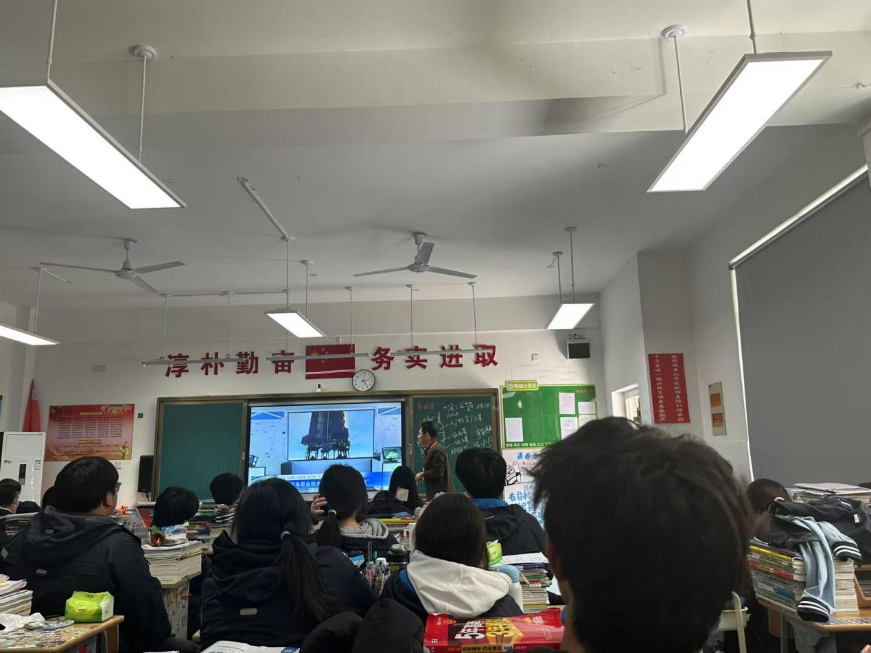 《航天与遥感:让卫星数据大有可为》课上,学校信息工程系专业教师黄威介绍了航天遥感技术在环境保护、灾害监测等领域的广泛应用,并且向同学们展示了“南京号”八一0八星的成功发射。黄老师说:“这是首颗由职业院校师生共同研制的卫星,现在已经在太空遨游。在职业教育的赛道上,你的梦想同样可以变成现实。”