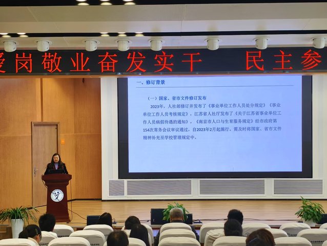 会议聚焦审议《开云手机官方版页面登录入口教职工考勤及请假管理办法》,由校党委委员、人事处处长夏玲玲进行详细解读。这一管理办法与每一位教职工的日常工作息息相关,关乎学校教学与管理秩序的稳定。在解读过程中,夏玲玲对各项条款的制定背景、目的及具体执行细则进行了深入阐释,让与会代表们对管理办法有了更清晰、全面的认识。
