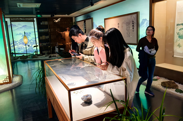 活动伊始,南机电师生代表走进中华绒螯蟹博物馆,在声光电交织的沉浸式展陈中回溯高淳螃蟹产业的蝶变之路。从最初零散的养殖户到如今产值超百亿元的产业链,从蟹苗培育技术突破到“互联网+农业”的营销模式创新,展柜中泛黄的创业手稿、历代蟹农的影像记录,让南机电师生代表触摸到乡村振兴背后的汗水与智慧。原来一只螃蟹背后藏着科技兴农、产业富民的密码!