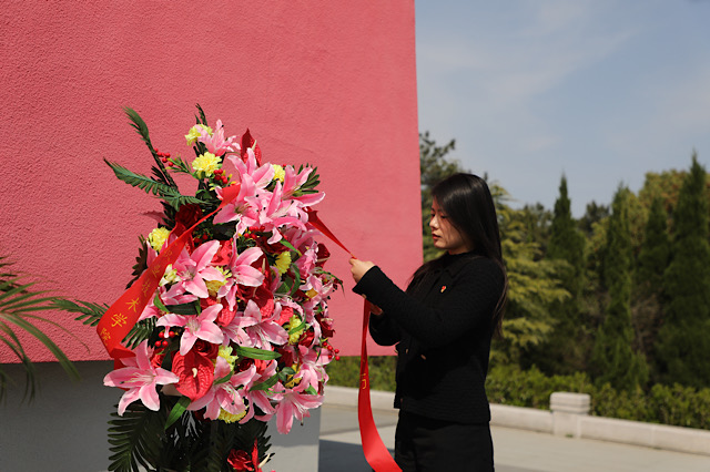 在庄严肃穆的纪念碑前,师生们整齐列队,神色凝重。低沉的哀乐响起,全体人员低头默哀,致以对革命先烈的深切缅怀。青马班学员迈着坚毅有力的步伐,向纪念碑敬献花圈,校团委书记孙晓燕整理缎带,饱含着对先烈的无上敬意。