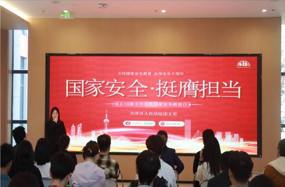 此次普法嘉宾是高淳人民法院综合办刑庭支部团支部书记、综合办二级主任科员孙国娟。孙国娟用通俗易懂的语言,结合真实案例,深入浅出地阐述了国家安全的重要性以及普通公民在维护国家安全中的责任与义务。她从政治安全、国土安全、军事安全等多个领域展开讲解,让师生们深刻认识到国家安全与每个人息息相关,增强了大家维护国家安全的责任感和使命感。讲座内容丰富详实,案例生动鲜活,赢得了现场师生的阵阵掌声。
