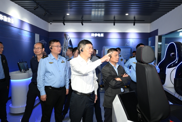 在安全应急体验中心,朱启军等各位领导学习了总体国家安全观,逐一参观体验了VR模拟逃生、模拟驾驶、触电感应、消防场景模拟灭火、地震应急演练、急救技能实操等6大展区18个体验项目,并对我学校“11633”安全文化体系以及“强化科技赋能、互动实践,推动安全知识“可感、可触、可用”的安全宣传教育培训模式表示肯定。