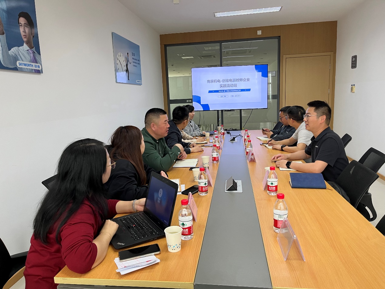 4月9日下午,南京机电-创维电器教师企业实践流动站2025年第一季度复盘交流会在创维电器股份有限公司举行。南京创维电器股份有限公司人力资源部经理刘英元,工业设计中心经理肖华,学校科研及校企合作处处长李木香,机械工程系主任毛奇,人文社科系书记李杰,流动站负责人卢彬和进站教师参加了本次交流。