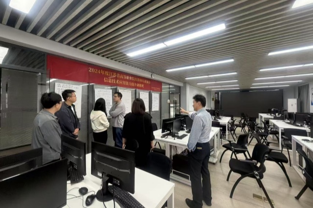 在南京信息职业技术学院数码艺术学院主要负责人的陪同下,曹安林一行首先参观了数码艺术学院的实训基地、作品展厅及校企合作工作室。数码艺术学院相关负责人详细介绍了学院的发展历程、专业特色及近年来在学科竞赛、产教融合等方面取得的成果。其院校丰富的教学资源和创新的实践教学模式给我校一行留下了深刻印象。