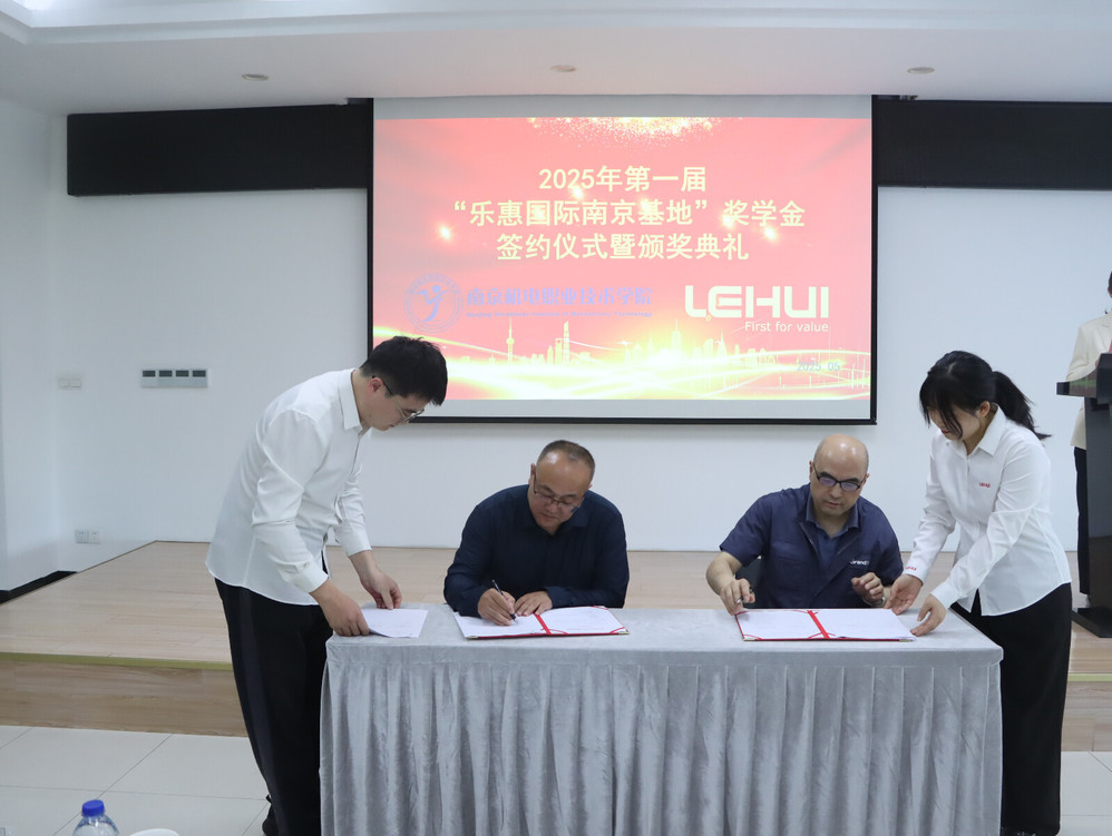 5月14日,第一届“乐惠国际南京基地”奖学金签约仪式暨颁奖典礼在乐惠国际南京基地培训厅举行。开云手机官方版页面登录入口党委副书记、副校长赵学洪,机械工程系主任毛奇,党支部书记胡枫,辅导员代表,教师代表,大三实习学生及23级学生代表,企业领导齐聚一堂,共同见证这一荣耀时刻。