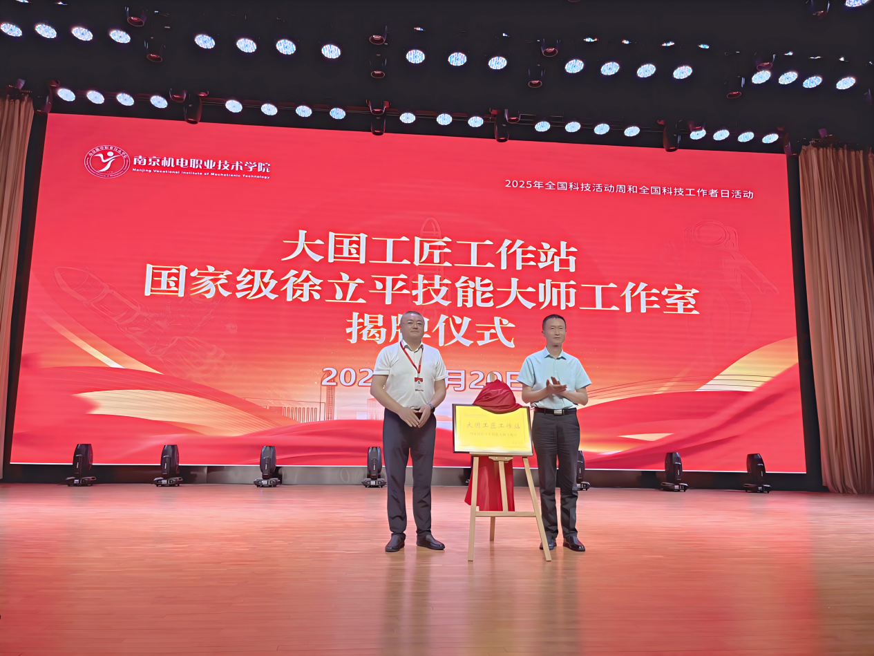 揭牌仪式上,徐立平和刁爱军共同为“大国工匠工作站——国家级徐立平技能大师工作室”揭牌!未来,学校将充分依托工作室,在大师的指导下,聚焦航天精密制造领域技术攻关,推动航天技艺传承与创新,培养新时代高素质航天工匠人才。