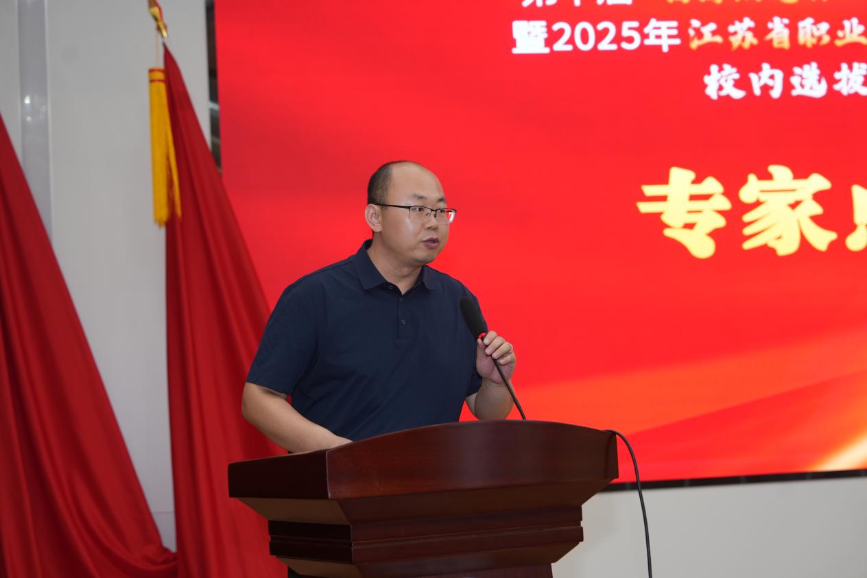 致辞中,学校党委委员、副校长刁爱军指出,本次大赛是国家深入实施创新驱动发展战略和人才强国战略的具体实践,顺应了发展新质生产力、构建现代化产业体系的时代要求,彰显了高校创新策源地的关键作用,打通了科研成果转化的高效通道,搭建了产学研用融合的重要平台,为高质量发展注入澎湃动能。他强调,青年是创新创造的生力军,希望我校师生珍惜创新火花,勇于探索,敢于实践,努力将奇思妙想转化为推动产业进步的强大动能,在2025年江苏省职业院校创新创业大赛中再攀高峰、续写辉煌!