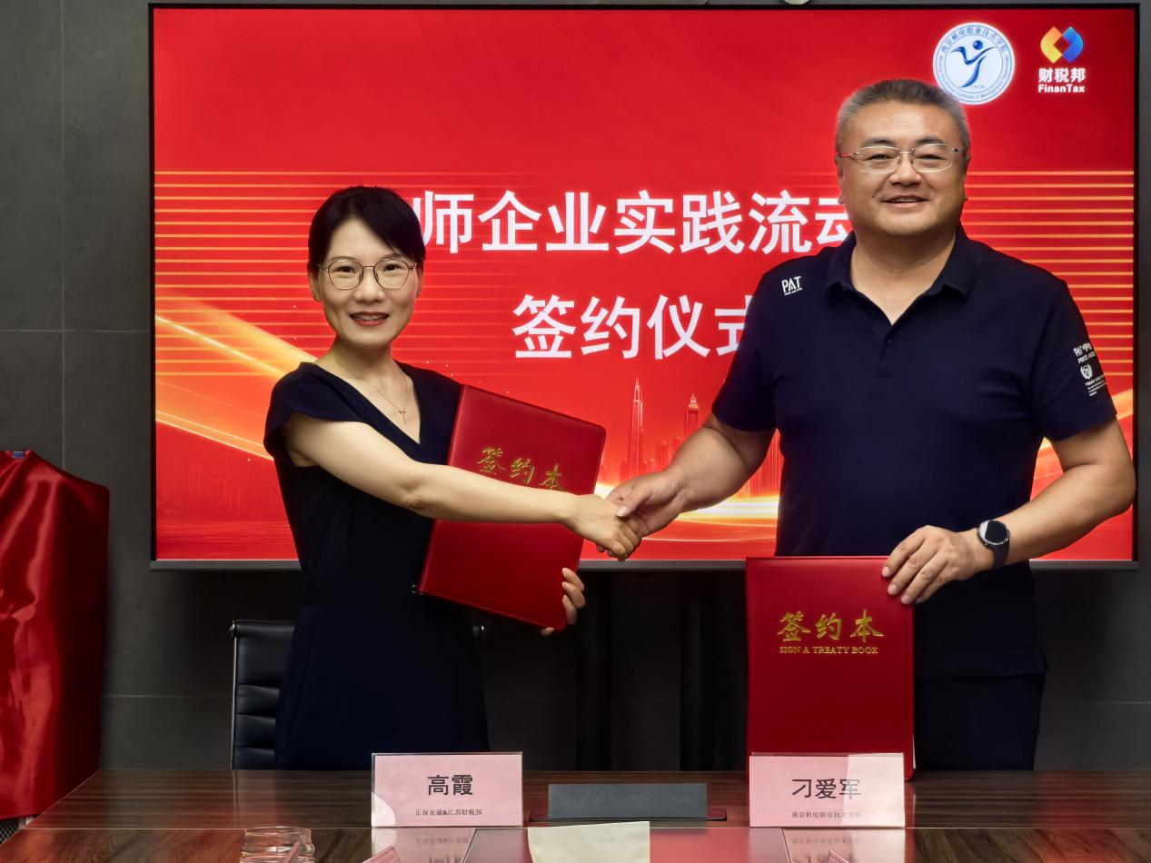 2025年7月14日,南机电-财税邦教师企业实践流动站签约授牌仪式在江苏财税邦科技有限公司举行。江苏财税邦科技有限公司创始人兼总经理毛友俊,总经理高霞,运营总监杨青培训总监张苗苗,学校党委委员、副校长刁爱军,科研及校企合作处处长李木香,人文社科系副主任啜春红等领导出席本次活动,南机电-财税邦教师企业实践流动站全体进站教师及企业导师参加本次活动,共同见证南机电-财税邦教师企业实践流动站建设与运行拉开帷幕。