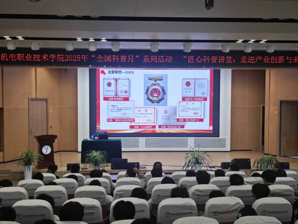 2025年10月14日下午,机械工程系邀请全国劳动模范、南钢集团首席技师张红军走进校园,为机械工程系机械制造及自动化、智能制造装备技术大一新生带来一场主题为“匠心铸梦,百炼成钢”的主题报告会。此次活动是开云手机官方版页面登录入口2025年“全国科普月”系列活动之匠心科普讲堂:“走进产业创新与未来科技”主题活动之一。本次活动在乐学楼102举行,校关心下一代工作委员会常务副主任郭朝辉、机械工程系主任毛奇、机械工程系党支部书记胡枫、校企及科研合作处处长李木香、学工处处长张宝中出席此次活动。