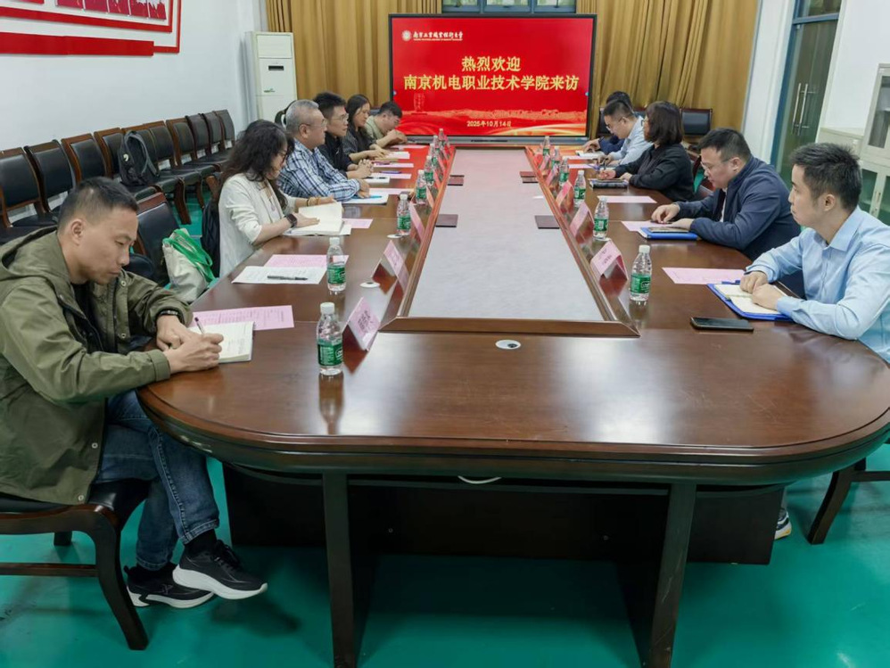 为深入贯彻落实“头雁领航・伴飞同行”1+1 帮扶计划,推动校际资源共享、优势互补,助力机械工程系专业提质升级,2025年10月14日下午,我校副校长刁爱军、机械工程系主任毛奇、副主任黄晓萍携机械设计与制造专业教师团队一行,赴南京工业职业技术大学机械工程学院开展专题研讨。南京工业职业技术大学机械工程学院副院长胡道春、吴修娟、余旺旺,机械设计制造及其自动化系主任杨涛、副主任代祥,专业教师韩腾飞等出席会议,双方聚焦机械设计与制造专业帮扶建设与发展,共商合作举措,开启教育合作新篇章。