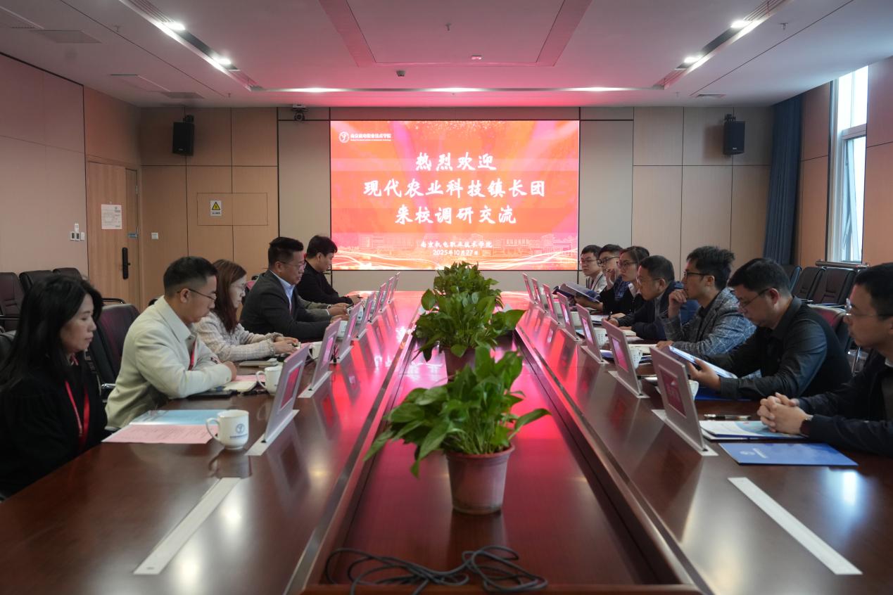 2025 年 10 月 27 日下午,以“校地协同・共促产教发展”为主题的现代农业科技镇长团调研交流活动在开云手机官方版页面登录入口育德楼 305 会议室顺利举行。高淳区人民政府副区长、科技镇长团团长邵刚,江苏省农业科学院研究员史高玲,南京农业大学副教授邢路娟,天津大学副教授黄俊,南京工程学院副教授黄亚洲,江南大学食品学院副研究员陈秋铭,南京理工大学副教授许赛,学校党委书记、校长周庆礼,党委委员、副校长刁爱军,科研及校企合作处处长李木香,信息工程系主任王国珍等领导出席活动,相关专业教师参与交流,共同擘画校地深度合作,产教深度融合的新蓝图。