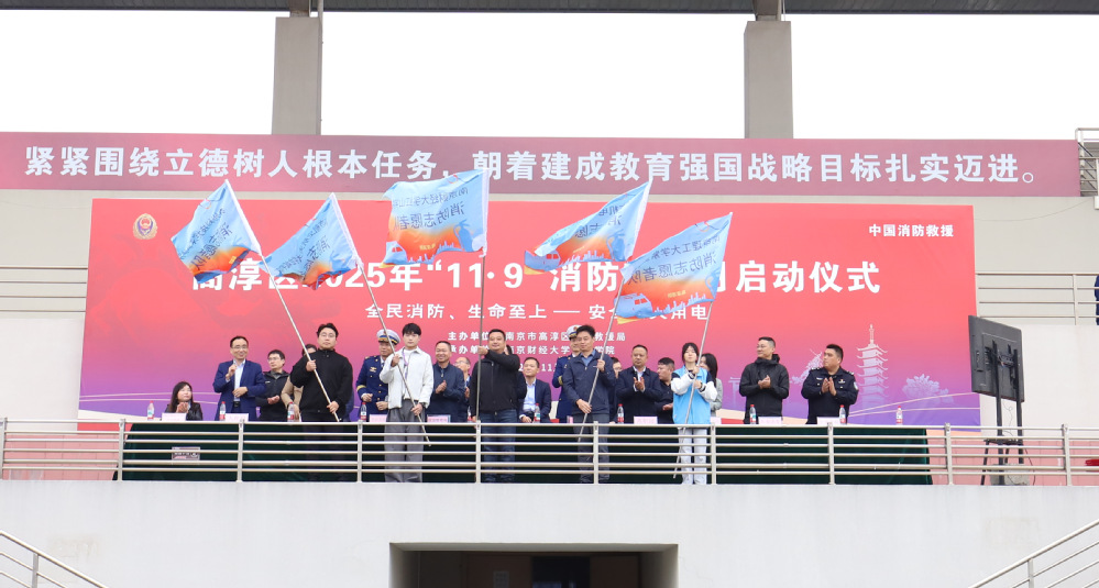 11月6日以 “全民消防、生命至上—安全用火用电” 为主题的高淳区2025年“119”消防宣传月启动仪式在南京财经大学红山学院举行。高淳区政府党组成员魏巍,应急管理局局长甘雨全,高职园管委会主任李强,总工会党组书记、常务副主席邓春燕,人社局副局长邢益松,媒体中心副主任刘明明,团区委副书记马俊,消防救援大队长孙震宁,消防救援教导员陈淑国和红山学院党委副书记、副院长王晨婷出席,区各镇街道分管负责人、消防重点单位代表、高职园高校代表、获奖单位和个人代表参加仪式。