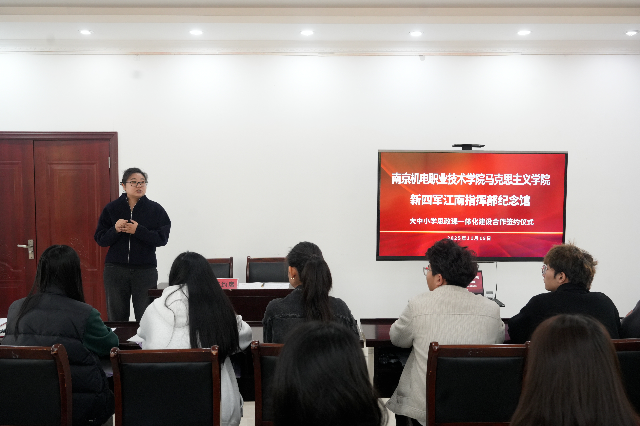 签约仪式在新四军江南指挥部纪念馆举行。马克思主义学院院长张玥,新四军江南指挥部纪念馆馆长张燕等双方代表出席仪式。根据协议,双方将在资源共建、师资培育、教学研究等方面展开深度合作,共同打造思政课实践教学基地,推动思政小课堂与社会大课堂深度融合。