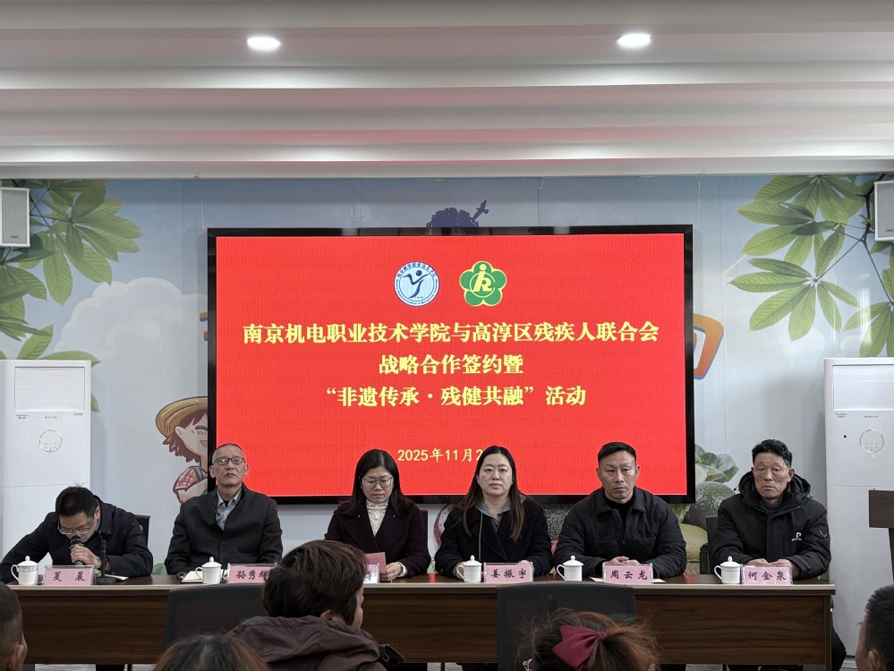 2025年11月27日,学校与高淳区残疾人联合会共建的“开云手机官方版页面登录入口社区助残教育服务站”在固城街道残疾人之家正式揭牌,并启动“非遗传承·残健共融——非遗文化赋能行动”社区教育活动。活动由高淳区残联副理事长夏晨主持,学校党委委员、纪委书记姜振宇,高淳区残联理事长王翠香,继续教育学院院长周云龙等出席。