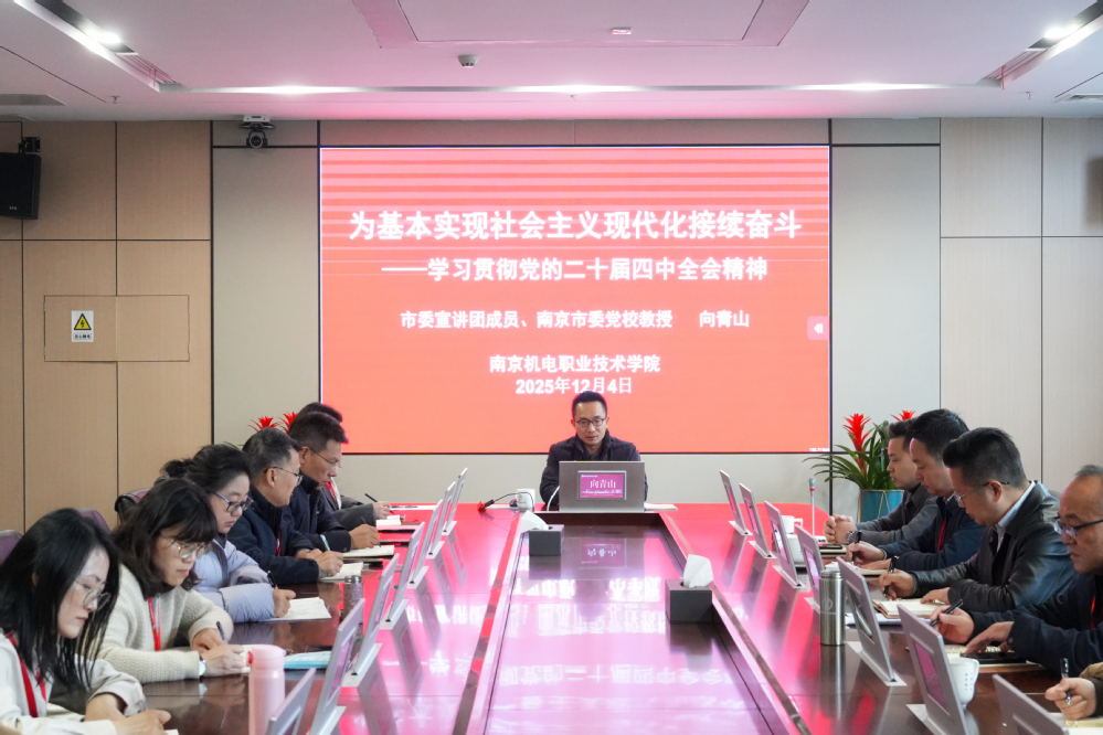 12月4日,开云手机官方版页面登录入口举行学习贯彻党的二十届四中全会精神市委宣讲团报告会暨校党委理论学习中心组(扩大)学习会。市委宣讲团成员、市委党校政治学与法学教研部主任、教授向青山应邀作专题宣讲报告。学校党委书记、校长周庆礼主持报告会。学校党委理论学习中心组成员、全体中层干部参加了学习。