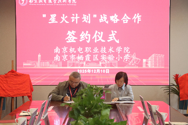 2025年12月10日,我校与南京市栖霞区实验小学“星火计划”战略合作签约仪式在育德楼305会议室隆重举行。此次签约,标志着两校在推动创客教育纵深发展、贯通大中小学创新人才培养链条上迈出了坚实一步,旨在将科技创新的“星星之火”播撒至基础教育土壤,培育面向未来的创新型人才。