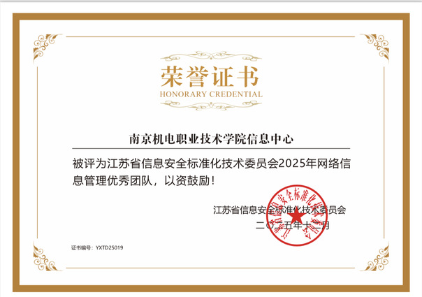 近日,在江苏省信息安全标准化技术委员会评选中,我校办公室信息中心荣获“江苏省信息安全标准化技术委员会2025年网络信息管理优秀团队”荣誉称号。