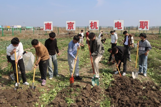 劳动教育不止于校园,更延伸至乡村振兴与社区服务的广阔天地,实现价值辐射。充分利用校内一站式学生社区开展劳动实践,并设立了春茶、秋蟹、夏麦、冬藏“1(学校)+3(校外)”劳动教育实践基地,按照季节组织师生种植蔬菜,基地为 8.9亩的学校大学生劳动实践基地(清风园、柘禄园、绛紫园、红蔬园、绿满园、青禾园、翠柏园、蔬乐园)、南京青茶空间、南京陈福明家庭谷物种植农场、南京和丰园康淳水产养殖中心,打造了一支专兼职劳动教育师资队伍。“青春为乡村添彩”行动中,电商团队为农户提供网店运营辅导,用专业所长赋能乡村发展。