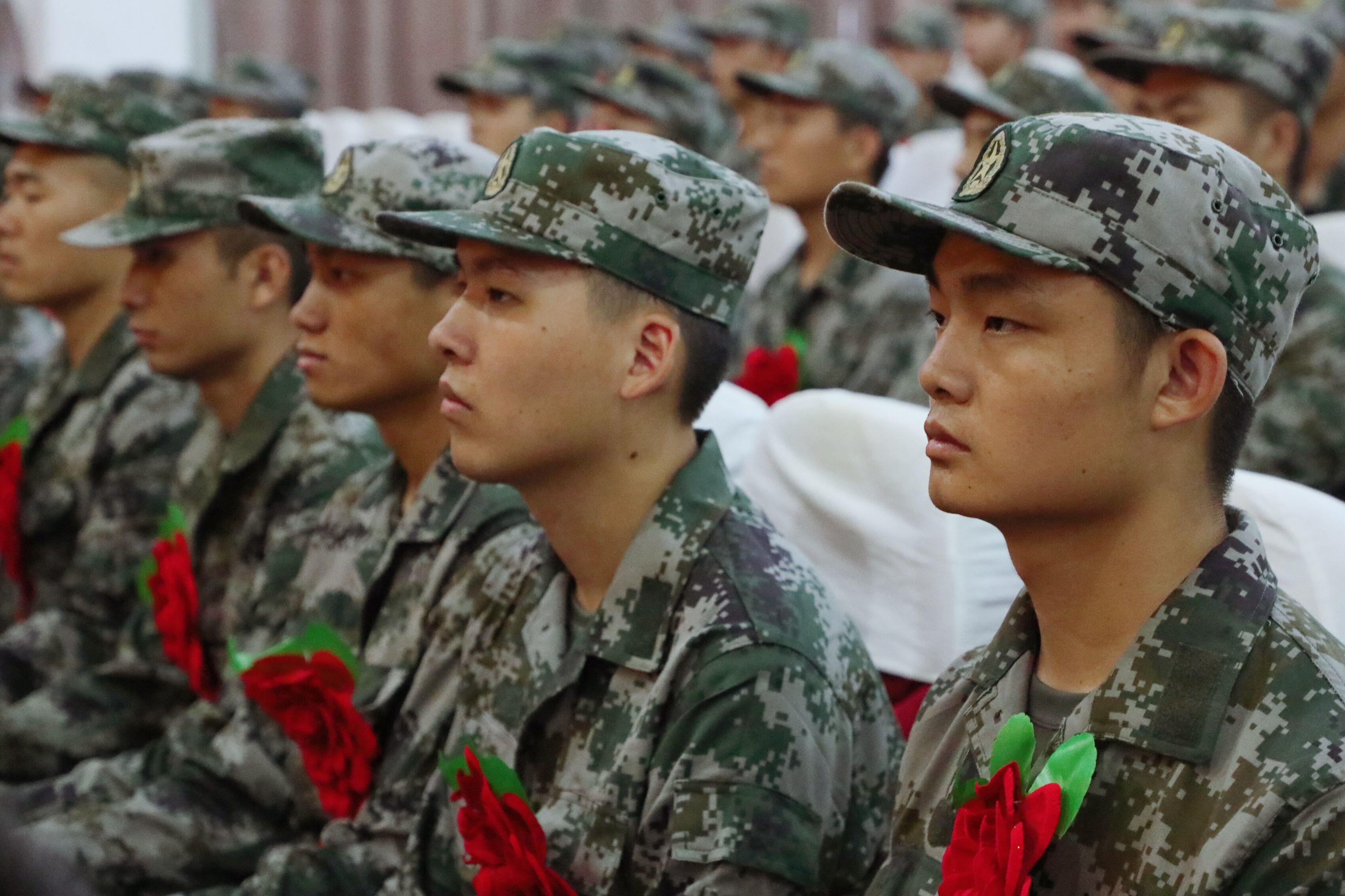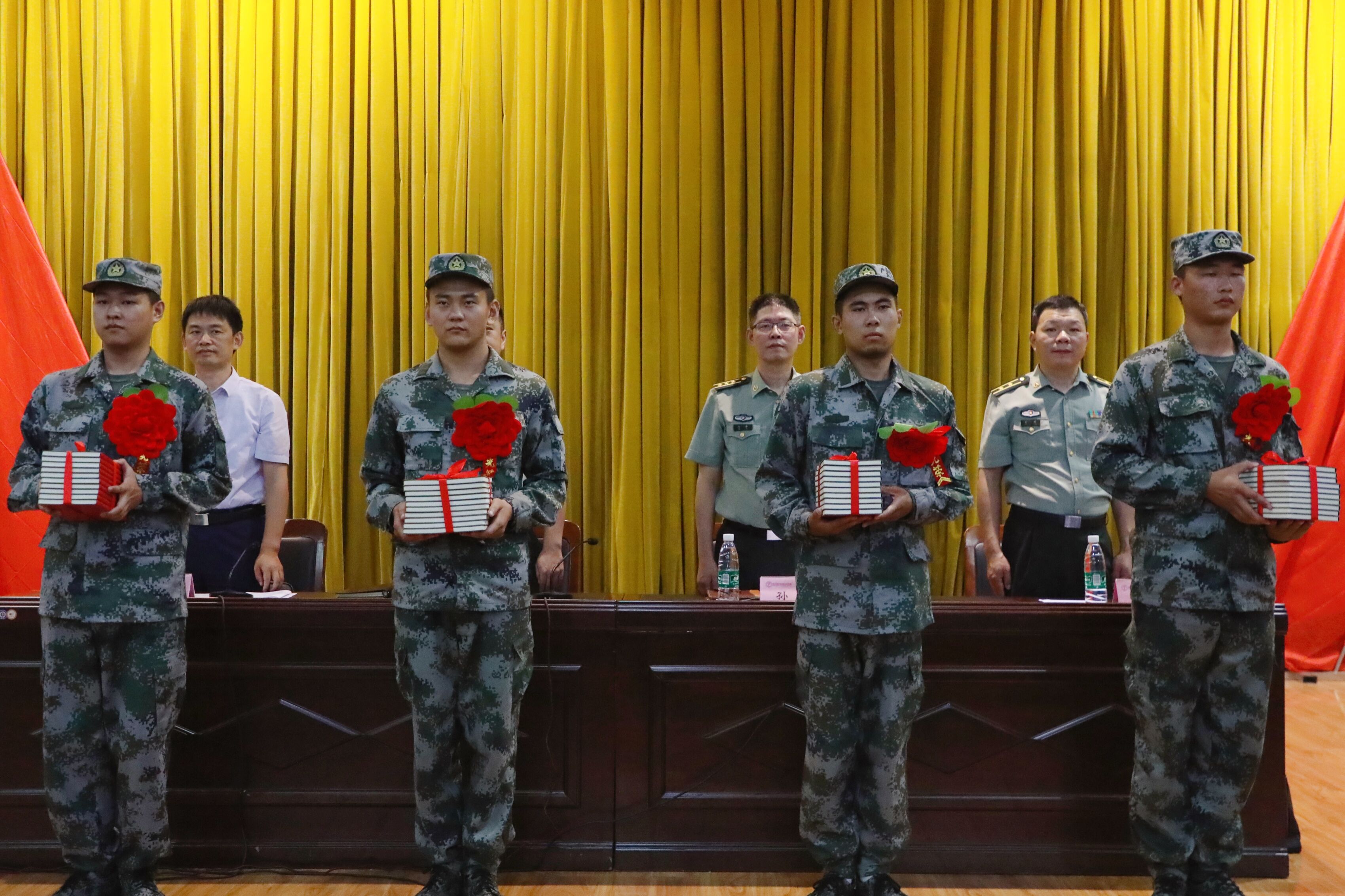 接着玄武区领导为新兵代表佩戴红花、赠送纪念品。