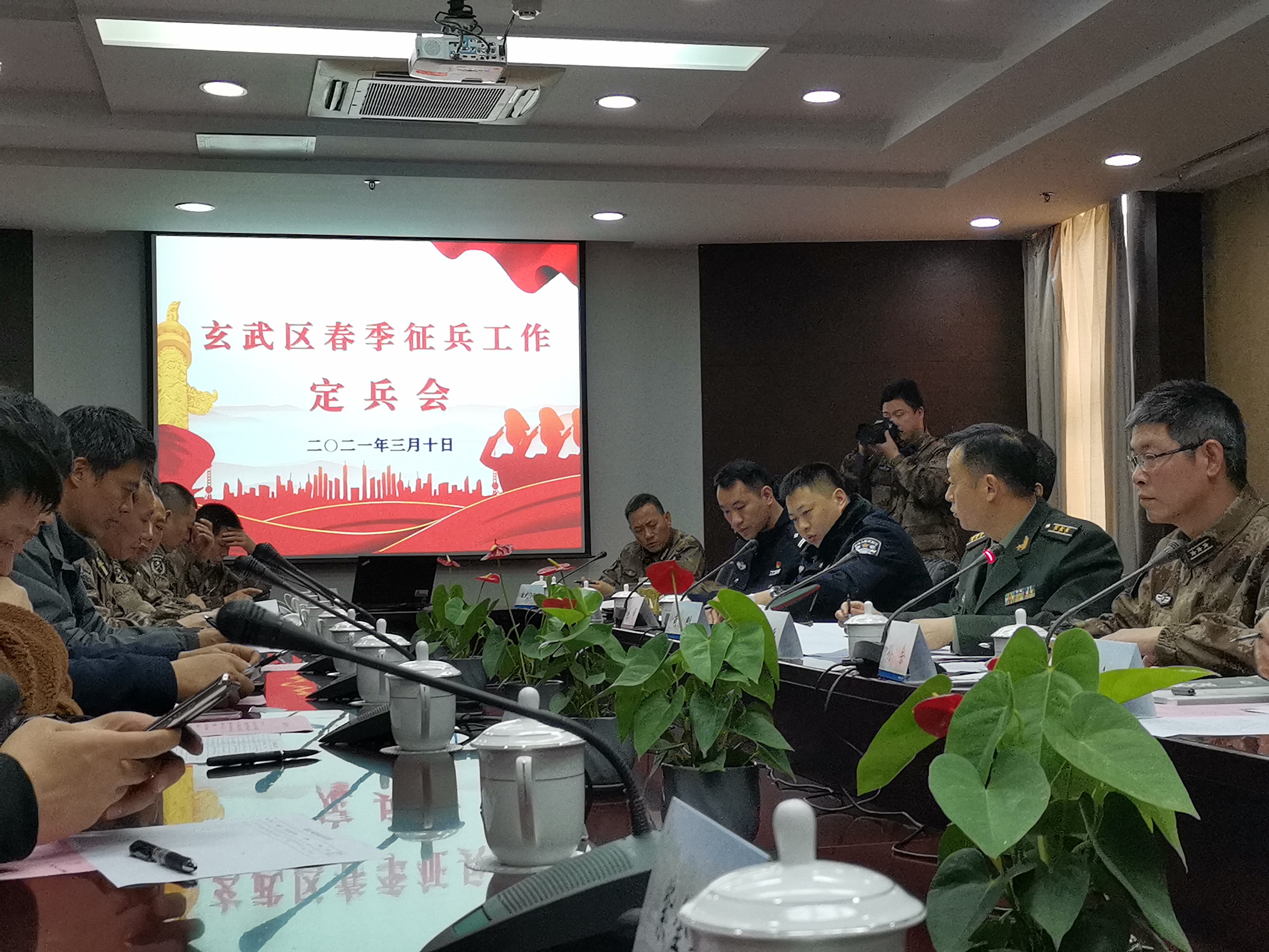 3月10日上午9时30分,我校人武部在南京理工大学学术交流中心第四会议室参加了玄武区召开的2021年春季征兵定兵会议。会议由玄武区人武部部长孙余主持。南京警备区动员处处长韩兵,区人武部副部长肖刚,区卫健委副主任王河,公安玄武分局人口管理大队大队长蒋峰,各高校武装部长,街道武装部长及区征兵办工作人员参加会议。