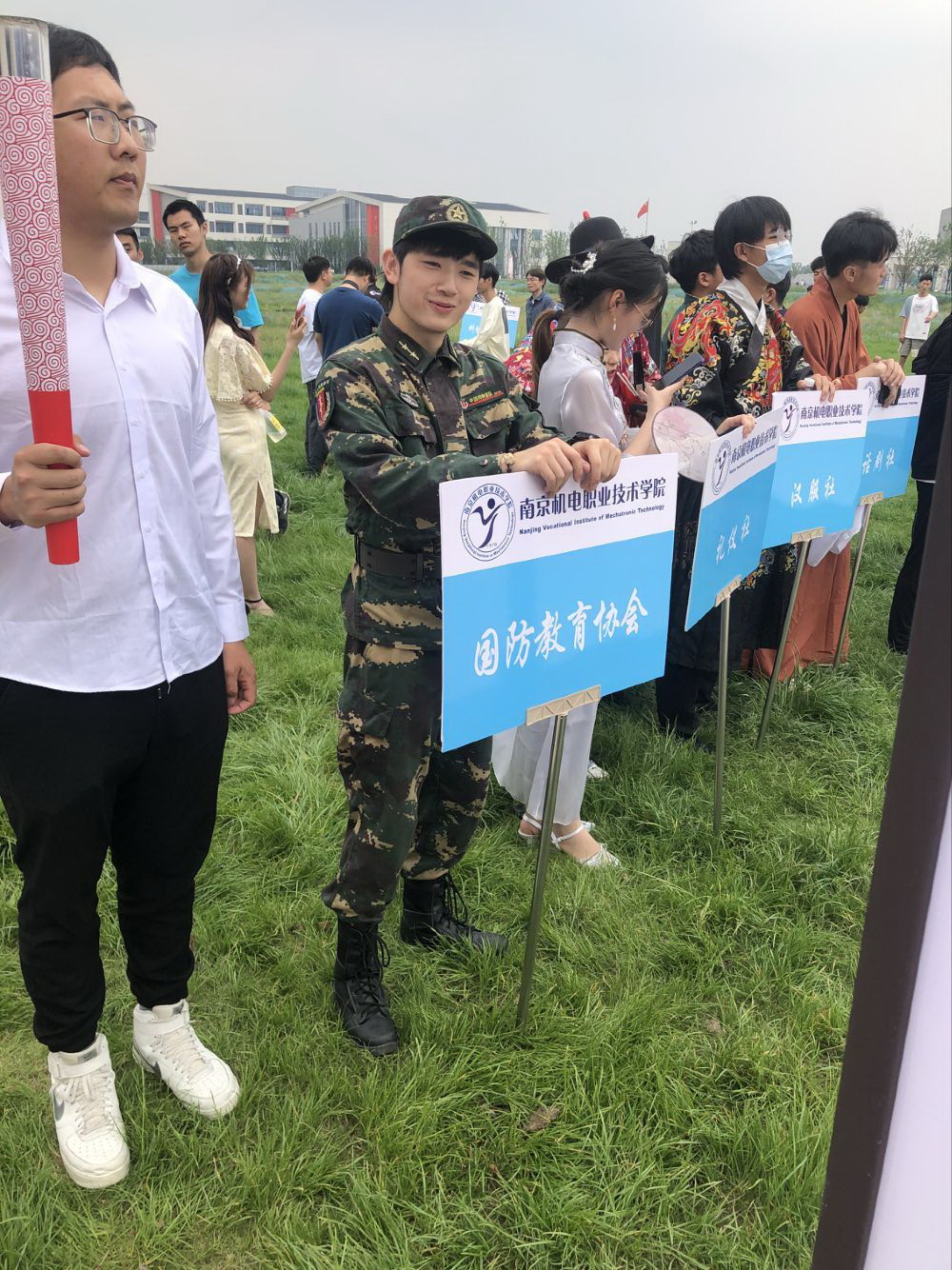 巡游活动的活动项目种类很多,既有展现个人魅力的音乐活动,也有体现合作精神商业思维的摆摊活动。不过最令人激动的还是国防教育协会主办的军人合影活动。国旗班的同学身穿帅气的军装,腰束武装带,手持冲锋枪,精神威武地站在活动现场,引来了大批崇拜者,他们借此机会,向前来参加活动的同学和老师们对征兵的相关政策做了宣讲,激发了许多学生想要当兵的热情。参加活动的同学,还可以通过各种游戏获得虚拟货币,以此换得和穿着军装的退役军人合影一次。