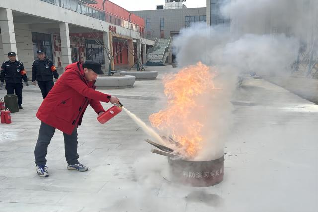 演练过程中,保卫处胡章龙为现场人员介绍学校各类灭火器的大致分布,仔细讲解了灭火器的种类及其规范使用方法,并重点强调了灭火器使用的注意事项。随后现场人员进行了实地灭火演练。此次演练使用的是手提式干粉灭火器,现场人员面对熊熊燃烧的火焰,丝毫不畏惧,用手提起灭火器,拔掉保险销,站在上风方向,用力按压灭火器压把,沉着冷静地对着火焰的根部左右扫射,直至火焰被干粉完全覆盖熄灭。