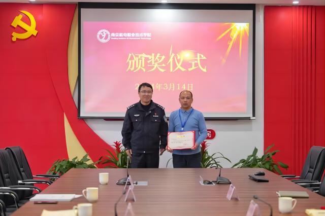 3月14日上午,南京市公安局内保支队副支队长张研来校颁奖并对我校安全稳定工作进行指导。