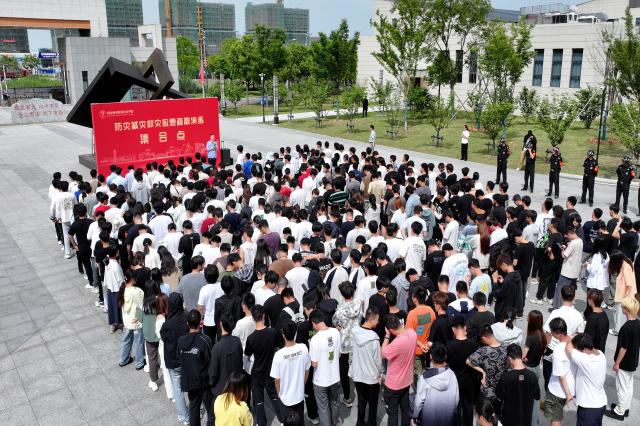 讲座结束后,以突发地震并引发火情为情景,拉响应急疏散警报,报告厅所有人员第一时间快速有序地疏散至鲁班广场集合点。刘教员对大家的疏散情况进行了点评,肯定大家学习实践能力,指出了优化改进的方法。