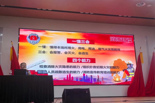 在培训中,刘涛普及了消防“一懂三会”和“四个能力”,强调生命无价、灾害无情、预防在先。要学会识别安全出口、疏散指示标识,注意用电安全,各类充电器等用电设施做到人走断电,强化了燃气使用安全,用近期省内外鲜活的警示案例展示了消防安全工作的重要性。