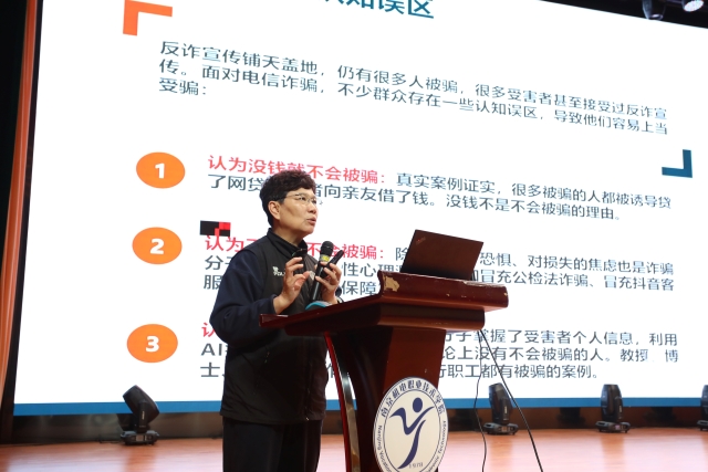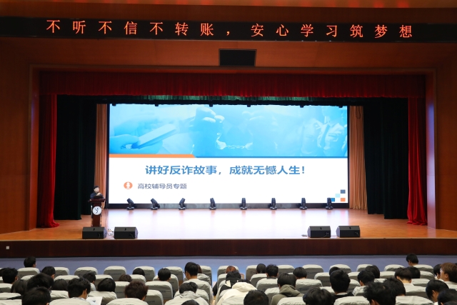 为深入贯彻落实习近平总书记关于打击治理电信网络诈骗犯罪工作的重要指示精神,切实筑牢校园安全防线,提升全体师生的识诈防骗能力,11 月 4 日下午,我校特邀陈红燕警官走进校园,开展主题鲜明的反诈专题讲座。学校领导及学生代表800余人现场参与,共同筑牢校园反诈“防护网”。