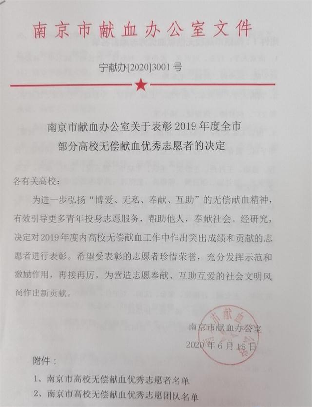 为表彰先进,弘扬无私奉献精神,进一步推进全市无偿献血工作深入开展,市无偿献血领导小组对2019年度无偿献血工作成绩优异的先进集体、先进个人以及优秀志愿者予以表彰。我院荣获“先进集体”荣誉称号,叶绘老师荣获“先进个人”荣誉称号,胡奔奔、刘鹏飞、吴沁洋3名同学荣获“优秀志愿者”荣誉称号。