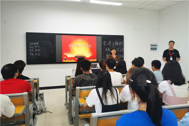 其次,信息工程系团总支书记于宇围绕《重温中国共产党党史》进行主题发言,从学习中共党史的重要意义、内容和方法,带领学生重温党的光辉历史,号召广大青年深入学习党史,全面贯彻习近平总书记对青年学生的要求,重实践、勇担当、讲奉献,在日常生活中展现青年活力、青年担当,努力成长为能够担当民族复兴大任的时代新人。