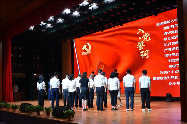 周庆礼强调对于全体机电人来讲,尤其要做到以下三点:一要解放思想。思想不牢,地动山摇。通过新的思想解放,释放新的发展能量,为学校高质量发展走在前列贡献智慧和力量。二要提升能力。有了担当的愿望,还要有担当的底气。要干一行爱一行、钻一行精一行、管一行像一行、抓一行成一行。特别是要强化专业思维、提高专业素养,成为本职岗位的行家里手;特别是要提高理论学习和执行决策的能力、解决实际问题的能力、调查研究的能力、统筹协调的能力和总结提高的能力。三要形成合力。学校各部门、所有师生都是学校事业发展的一个整体,成就学校事业是全体师生的共同责任。为此,学校各级党组织和广大党员要深刻把准新时代新使命新征程,切实增强政治领导力、思想引领力、群众组织力、人心凝聚力,上下左右,四面八方、凝心聚力、同心协力,共同推进学校各项工作高标准建设,高质量发展。会上,全体党员在周庆礼的领誓下,高举右拳,重温入党誓词。铿锵的誓言响彻全场,信仰的旗帜在心中高高飘扬。