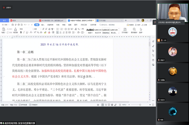 第二项议程,带领全体党员学习《中国共产党普通高等学校基层组织工作条例》,为全体党员同志的工作指出了明确的方向和目标。