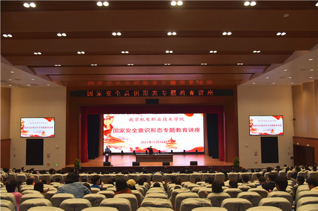 为进一步加强学校意识形态建设工作,不断巩固马克思主义在意识形态领域的指导地位,11月16日下午,学校特邀南京市公安局境外非政府组织管理办公室主任万红来校开展国家安全意识形态专题讲座。本次讲座由学校保卫处处长杨小波主持,高淳区公安分局党委副书记、副局长周小雨,学校党委委员、副院长赵学洪,学校党委工作部部长周启国及高淳区公安局民警代表、学校党员教师代表、青马班学员参加。