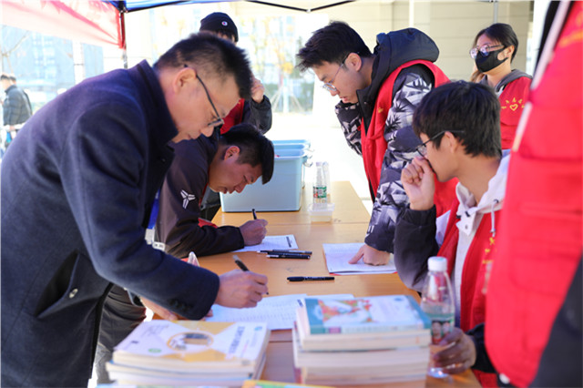 2021年12月,南京市高淳区凤柏村图书室刚刚建立完成,书籍十分匮乏。为践行初心使命,聚焦社会责任办实事,协助凤柏村建立图书室,号召全校师生捐献闲置书籍,学校于12月21日下午在食堂门口开展“童心关爱,共沐书香”爱心捐书活动。