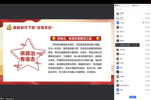 为喜迎党的二十大,引导全体教职工增强“四个意识”、坚定“四个自信”、做到“两个维护”,对“国之大者”领悟到位,信息工程系党支部依托腾讯会议平台于4月19日开展了线上政治理论学习,本次学习的主题是“喜迎党的二十大,永远跟党走”。支部书记吴伟萍主持会议,支部全体党员及普通教职工参加学习。
