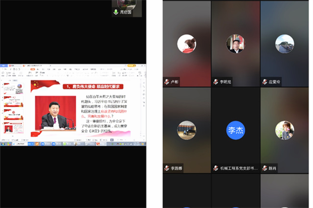 4月20日,机械工程系党支部通过腾讯会议召开线上政治学习会,专题学习了党的十九届四中全会精神。本次会议邀请了学校党委工作部部长周启国担任主讲,支部书记李杰主持,支部全体党员参加学习。