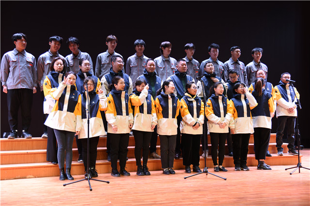 在比赛中,机械工程系师生带着自信,着装整齐,精神饱满地站上了舞台,璀璨的灯光下,一张张朝气蓬勃的面孔,激情嘹亮的歌声,震撼了每一位观众。